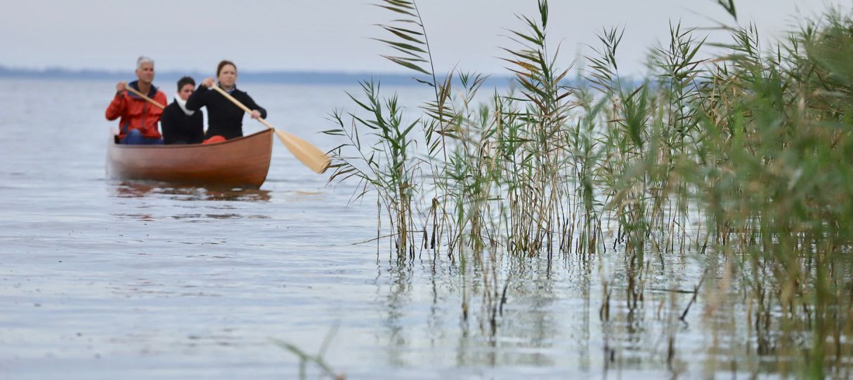 Natürlich gibt es gerade in den Orten am Achterwasser viele Möglichkeiten, die Wasserlandschaften der Insel auf eigene Faust und mit eigener Muskelkraft zu erkunden, zu erleben und zu genießen. Von der Tretbootspazierfahrt von Kiki’s Bootsverleih in Loddin, über eine Kajaksafari, die das Forsthaus Damerow anbietet und auf der man so einiges über inseltypische und manchmal auch recht seltsame Naturphänomene lernt, bis hin zu Surf- und Kiterunden auf dem schönsten Stehrevier der Insel, am Café Knatter in Ückeritz – Es ist für jeden, der gern aktiv ist, etwas dabei.