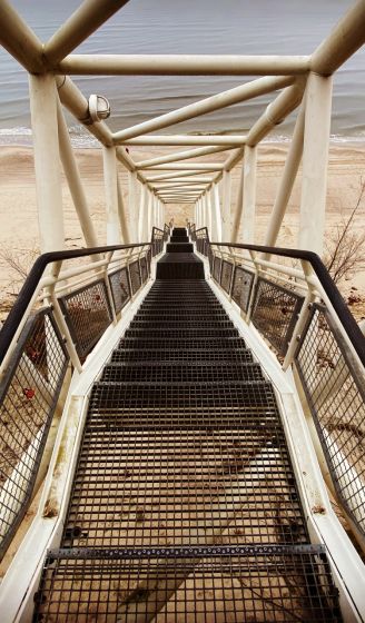 Einen außergewöhnlichen, aber angesagten Fotopoint hat das kleine Ostseebad Ückeritz noch zu bieten. Auf Höhe des Reha-Zentrums Ückeritz befindet sich eine imposante Stahltreppe, die von der Steilküste hinunter an den Strand führt. Für alle, die #architecture mögen, ist sie ein Objekt, der zum Spielen mit der Perspektive einlädt.