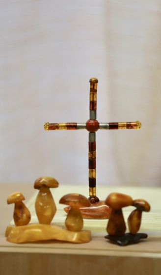 Wenn der leidenschaftliche Handwerker erst einmal so richtig loslegt, vergisst er Raum und Zeit. „Dann kann es schon mal drei Uhr nachts werden“, lacht seine Frau Tina. Sein größtes Schmuckstück wog 500 Gramm. Bernstein ist sehr leicht. Da kann man sich vorstellen, dass die daraus entstandene Figur – ein Pilz – sehr groß war. Sein diffizilstes Werk aber waren drei Spielwürfel aus einem einzigen Bernstein. „Da durfte nichts schief gehen oder abplatzen. Ich hatte ja keinen Ersatz“, erzählt er.