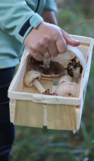 Apropos Körbchen. Pilze gehören beim Sammeln in einen offenen Korb. Luftdicht abgeschlossen in einer Tüte werden sie schnell matschig und ungenießbar.