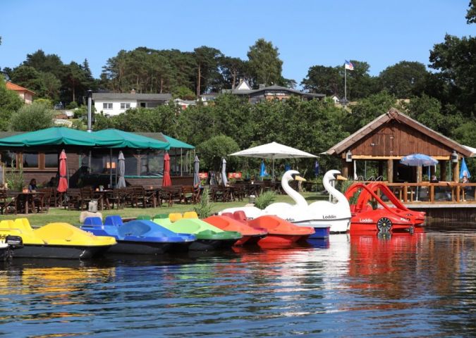 Eine Bootsfahrt, die ist lustig… Ganz besonders mit einem Tretboot. Bei Kiki‘s Bootsverleih am Achterwasser in Loddin ist die Auswahl an skurrilen Tretern enorm. Ob im Plastikoldtimer, im rosafarbenen Flamingo oder einem der klassischen Tretboote – Der Spaß, als Freizeitkapitän gemütlich übers Wasser zu schippern, ist bei allen gleichermaßen unterhaltsam, entspannend und bei Bedarf wunderbar erfrischend. Auch Ruder- und Motorboote können ausgeliehen werden.
