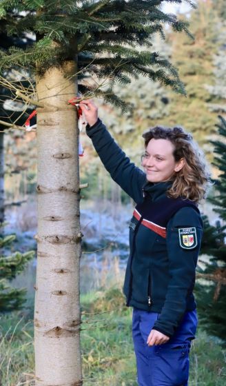 In Knops Aufgabenfeld gehört neben all dem auch die Bewirtschaftung des Waldes, also der Verkauf von Holz. Und hier kommen die Weihnachtsbäume ins Spiel. Denn ob Seebaddeko, Weihnachtsbaum in der Schule, Seebrückenverschönerung oder Klinikschmuck – viele der öffentlich zu bewundernden Tannenbäume stammen von einer der Usedomer Weihnachtsbaumplantagen. Eine davon befindet sich unweit des Forstamtes in Neu Pudagla. Hier wachsen hauptsächlich Nordmanntannen und Kolorado-Tannen. „Aber gerade hier an der Küste sind auch Kiefern und Fichten noch sehr beliebt“, weiß Anne-Sophie Knop. Neben der Weihnachtsbaumplantage in der Nähe von Ückeritz gibt es noch eine in der Nähe von Korswandt und eine im Revier Usedom. Die Bäume, die auf den Plantagen wachsen, sind bis zu 25 Jahre alt. „Dann haben sie natürlich schon eine stattliche Größe“, erzählt Knop und zeigt auf eine mächtige Tanne, die sich die Ahlbecker Rehaklinik ausgesucht hat.