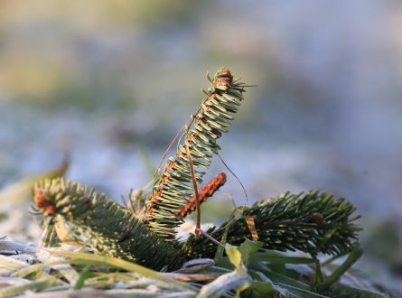An diesem Morgen im Wald, inmitten von kleinen und großen Weihnachtsbäumen, kommt angesichts des Raureifs, der sich auf alles wie eine Schicht Puderzucker gelegt hat, tatsächlich ein bisschen Weihnachtsstimmung auf. Es ist wieder so weit. Die Zimmer und Stuben erstrahlen voller Lichterglanz und festlich geschmückter Bäume. Und wer weiß, vielleicht kommt der eine oder andere Tannenbaum von eben jener Weihnachtsbaumplantage, auf der die Revierförsterin Knop gerade steht.