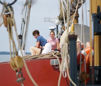 Die wohl aufregendste Art, das Usedomer Achterwasser mit einem Schiff zu erobern, ist eine dreieinhalbstündige Segeltour mit dem Topsegelschoner „Weiße Düne“. Dieses über hundert Jahre alte holländische Plattbodenschiff bietet Abenteurern die Möglichkeit, an einem Tages- oder Abendtörn teilzunehmen. Aufsteigen, Segel setzen, alles hinter sich lassen. Während man sanft über das Achterwasser segelt, gibt es maritime Leckereien aus der Bordküche, die mit einem Störtebeker Bier, Latte Macchiato oder anderen leckeren Getränken kombiniert werden können. Und nach dem Anlegen, möchte man gleich wieder ablegen.
