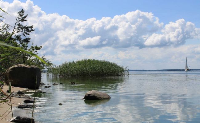 Der Rückweg bis zum Eingang des Loddiner Höfts ist identisch. Ab hier führt die Wanderroute rechts wieder zurück ins Naturschutzgebiet und hinunter zum Achterwasser sowie dem kleinen Naturhafen „Die Melle“. Auf dem Deich geht es dann weiter bis zum Ende des kleinen Hafens und von dort links entlang dem Deichgraben bis zu einer asphaltierten Straße. Querfeldein erreicht die Wanderroute die alte Dorfstrasse Kölpinsees, heute ein Feldweg parallel zur Strandstraße. Dieser folgt der Weg ca. 5 Minuten bis zur B111. Hier biegt er links ab und erreicht nach wenigen Metern den Ausgangspunkt der Wanderung.