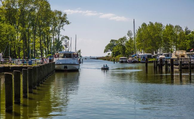Unser Tipp: Anheuern auf der kleinen Achterwasserrundfahrt – ein echter Naturtörn zu Flora und Fauna im Achterland. Oder selbst eines von 15 PS-Motorbooten mieten, die Sie ohne Bootsführerschein locker fahren können.
